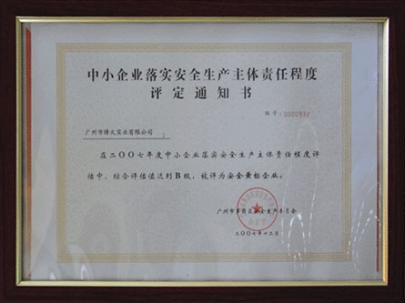 中小企業(yè)落實(shí)安全生產(chǎn)主體責(zé)任程度評定通知書